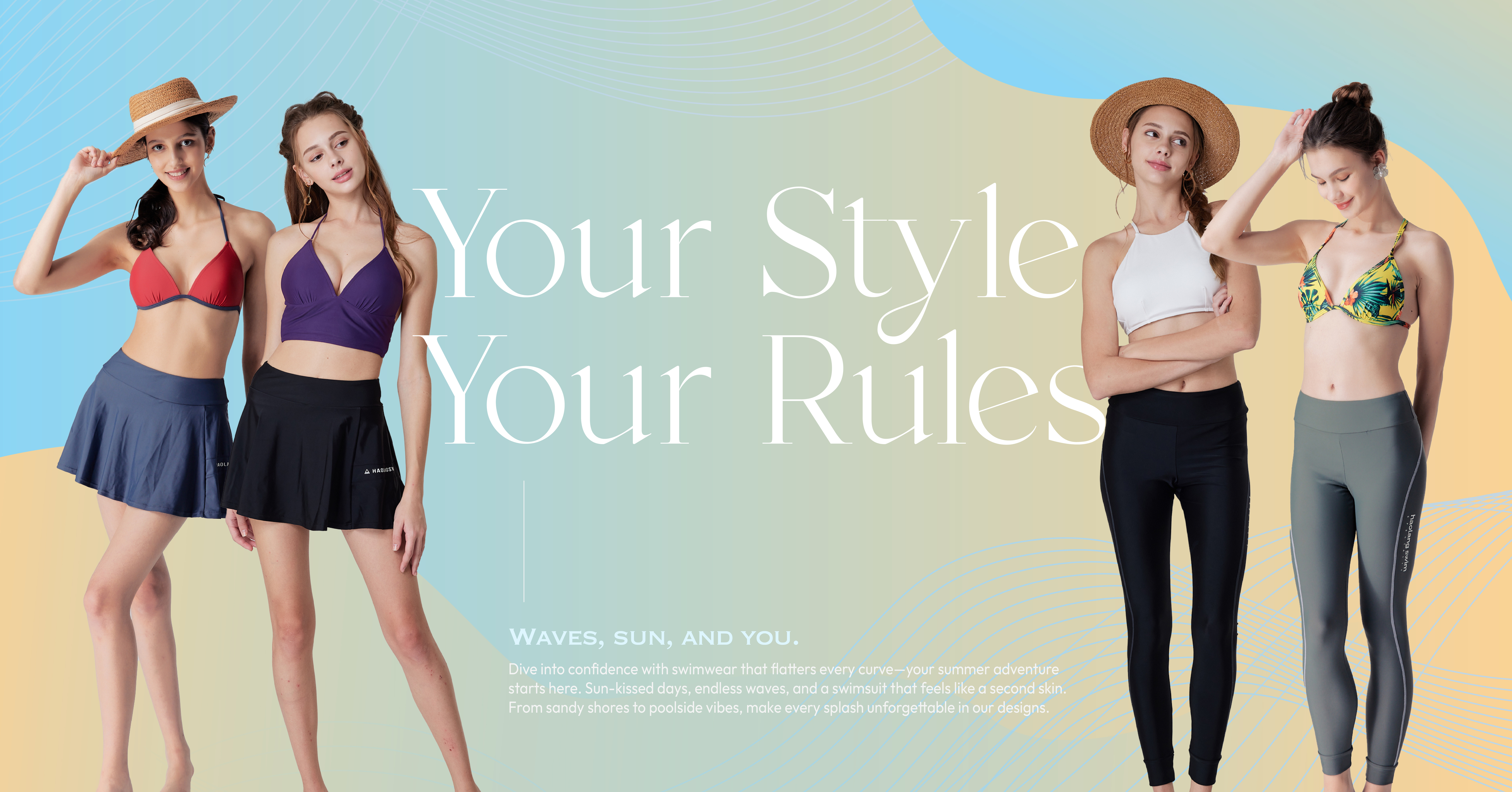 Haolang 千鳥格裙兩件式泳衣/加大尺碼