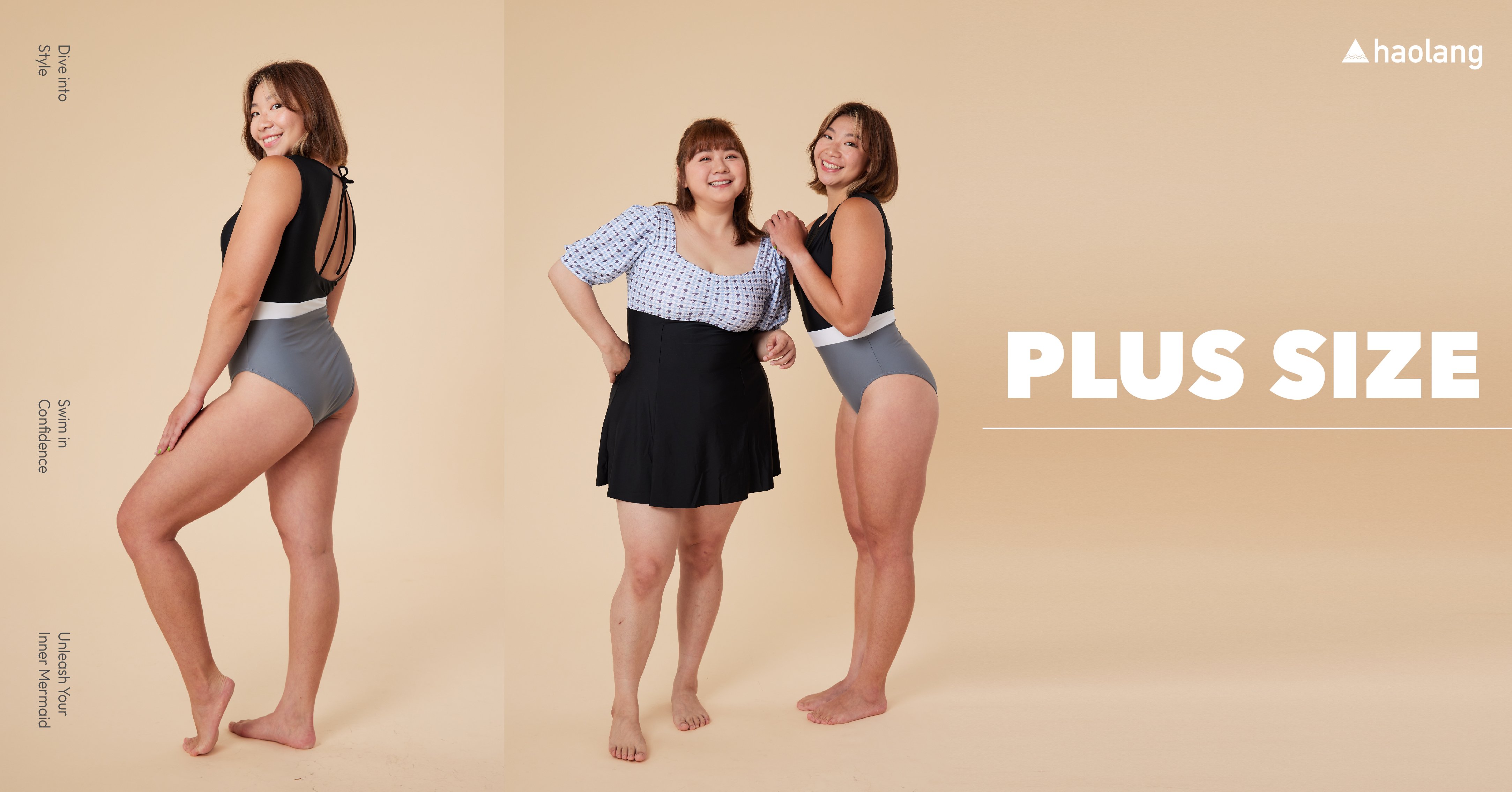 Haolang 經典黑大尺碼兩件式泳衣/寬鬆型