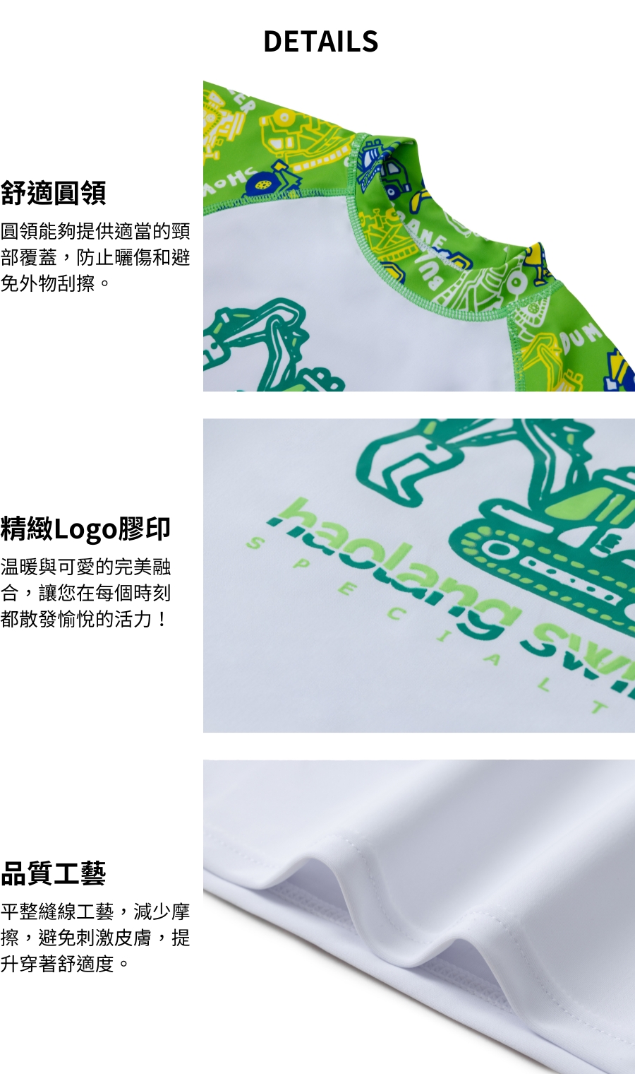 Haolang 挖土機男童長袖泳衣(TOP)
