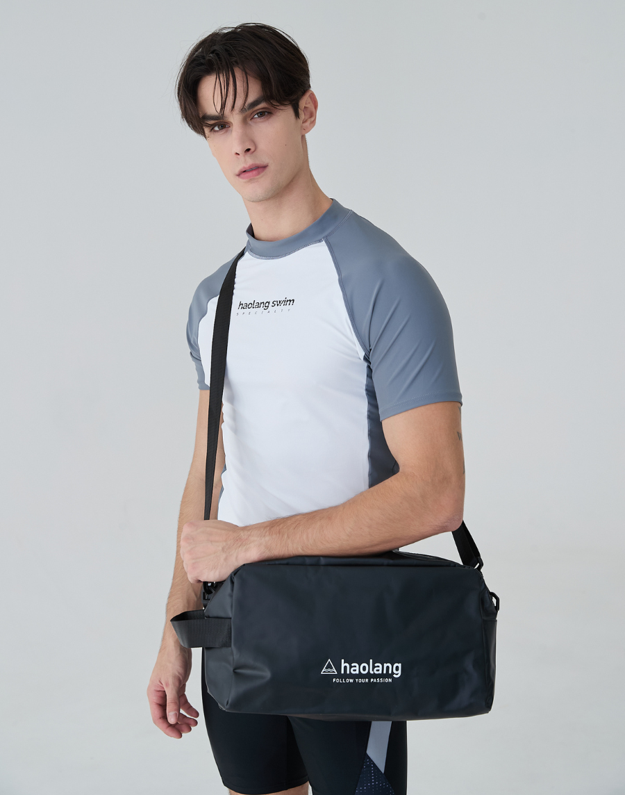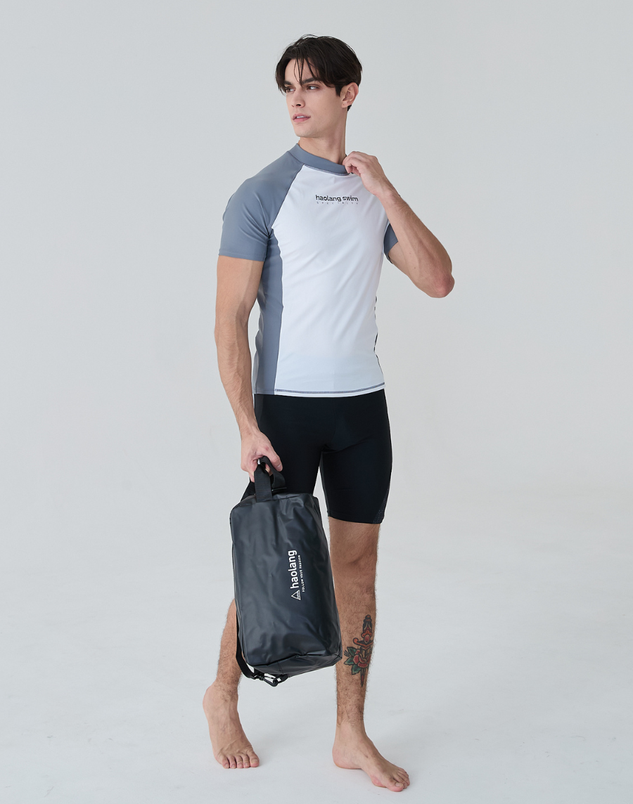 Haolang 灰白拼接男款短袖泳衣