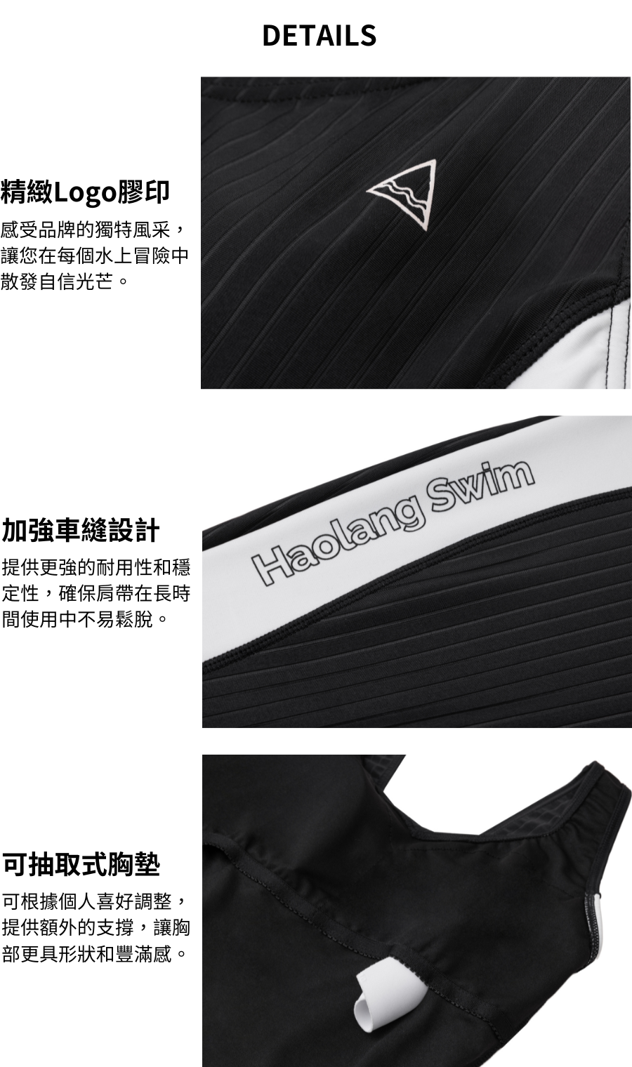Haolang 極簡黑白競速連身四角泳衣/抗氯