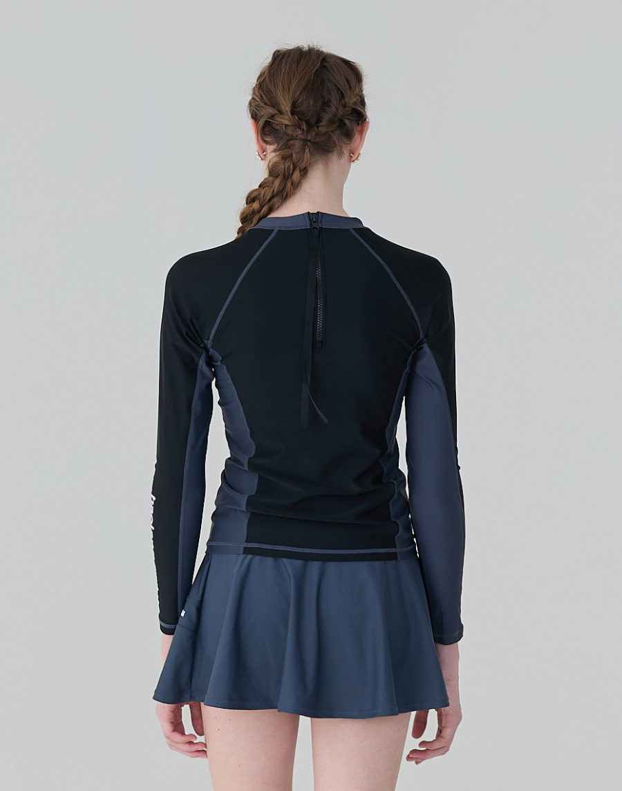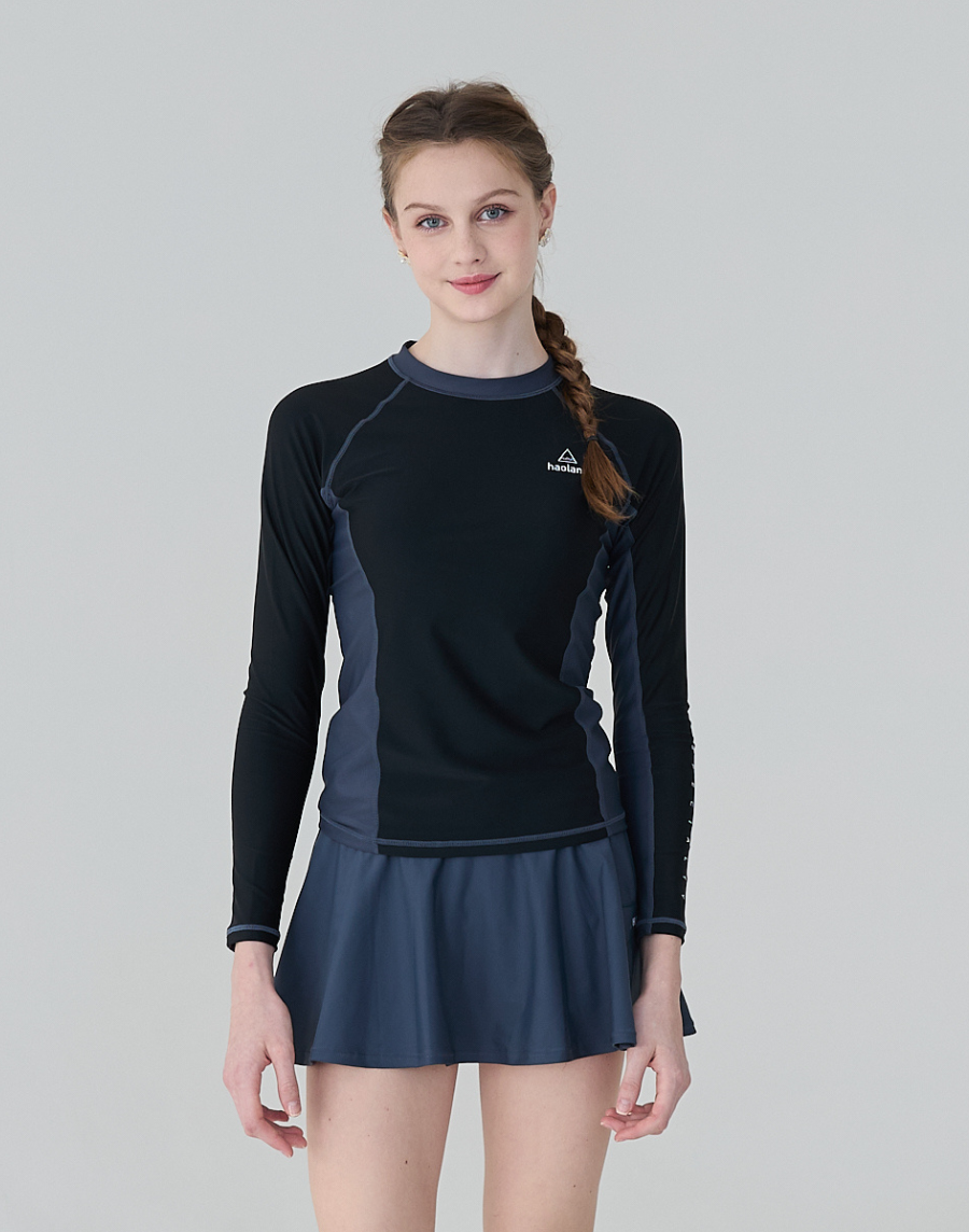 Haolang 經典黑短版長袖泳衣(TOP)/抗UV