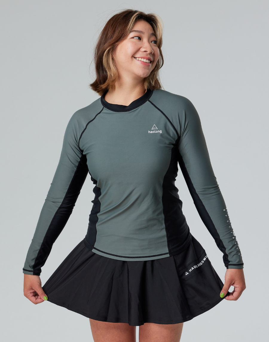 Haolang 炭灰綠女款長袖泳衣/加大尺碼