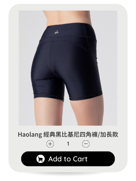 需自行搭配喜歡的長泳褲或游泳裙