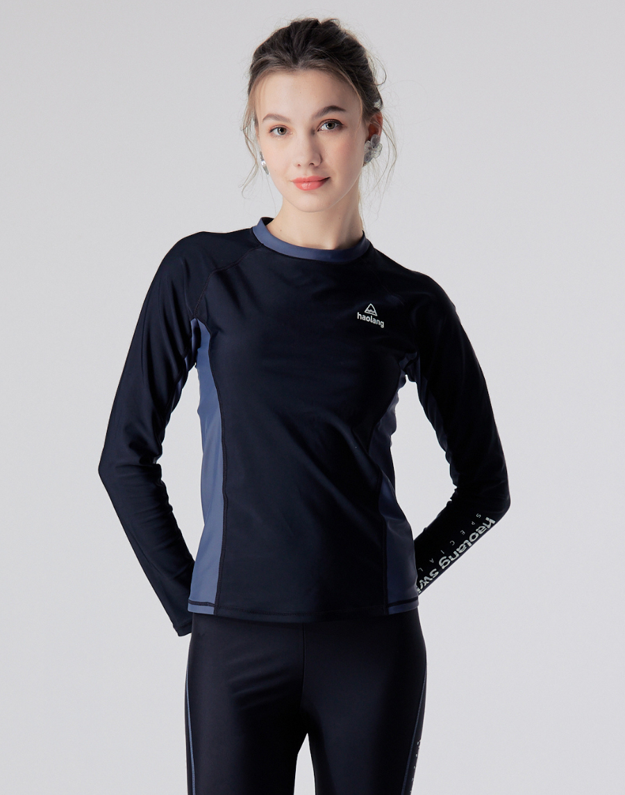 Haolang 經典黑短版長袖泳衣(TOP)/抗UV