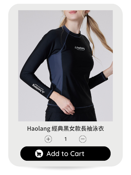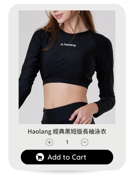 Haolang 經典黑短版長袖泳衣(TOP)/抗UV