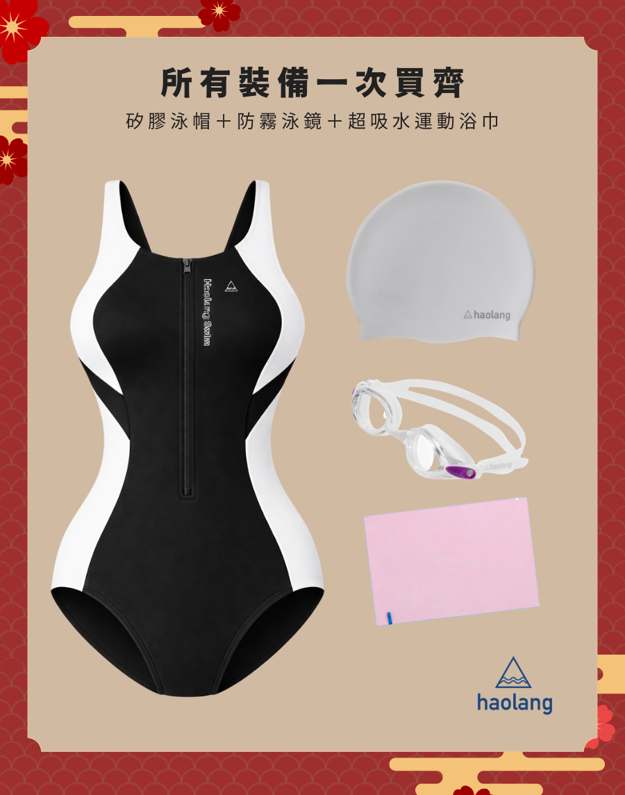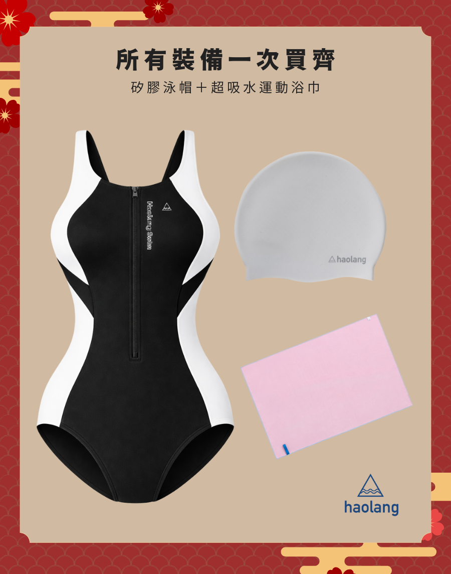 - 矽膠泳帽、防霧泳鏡、快乾毛巾,配件三選二,全部都要也可以!