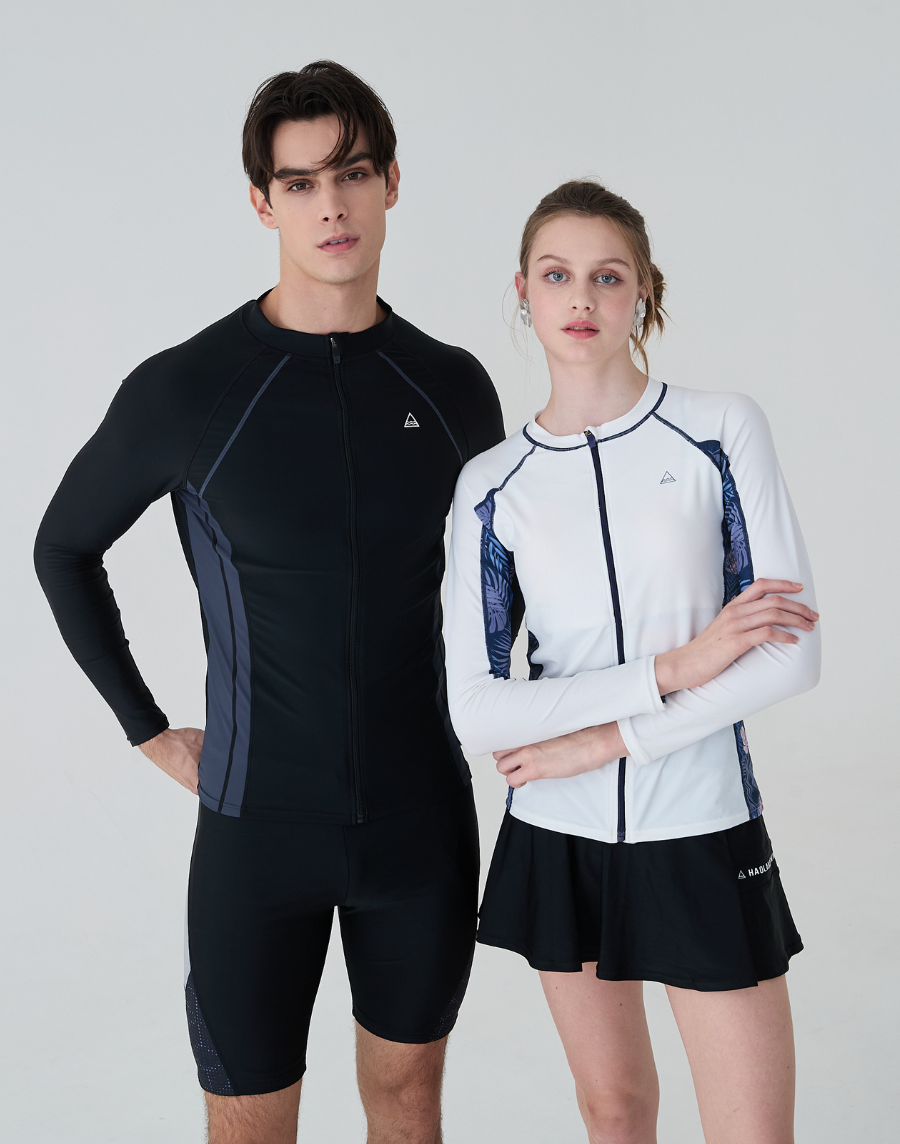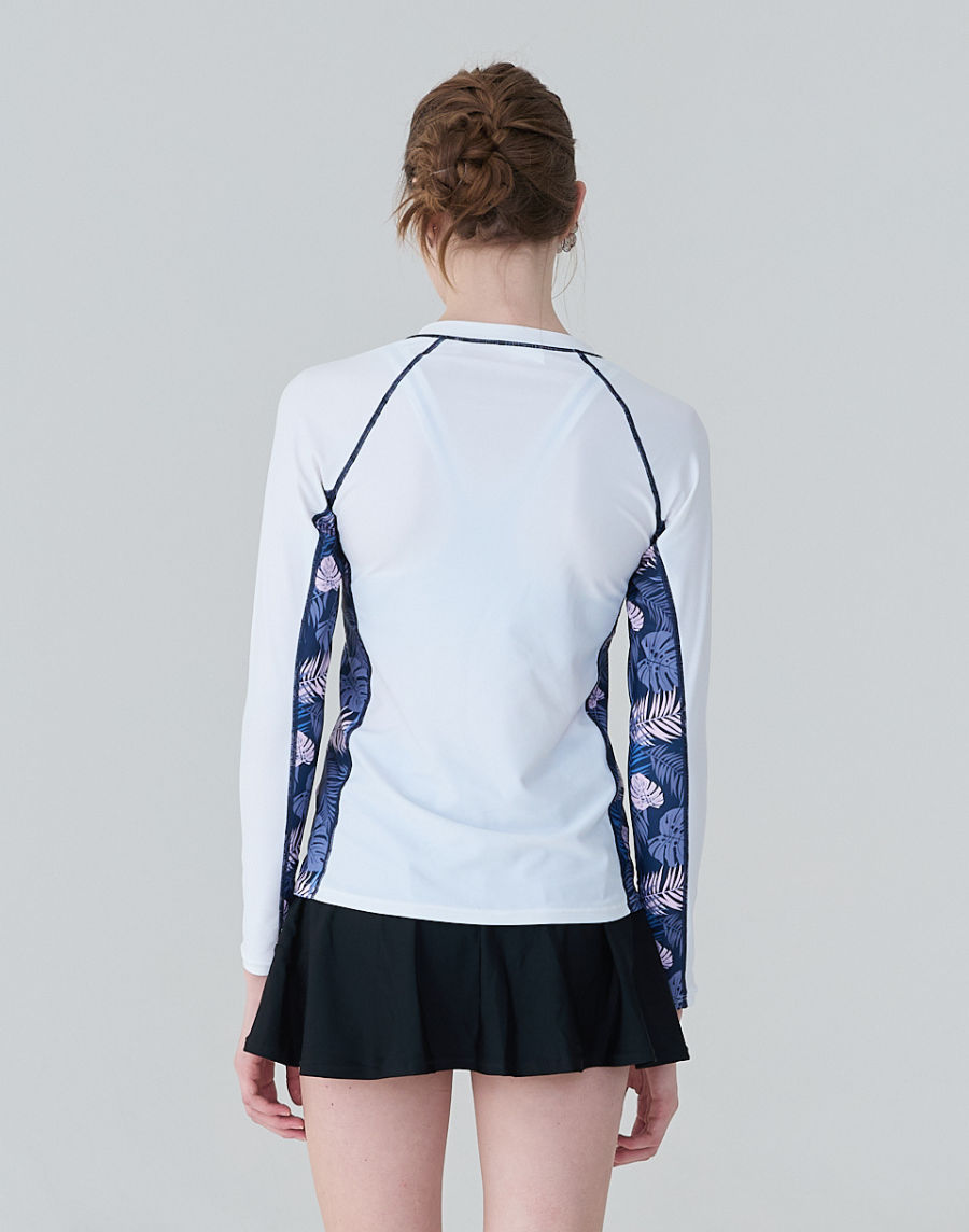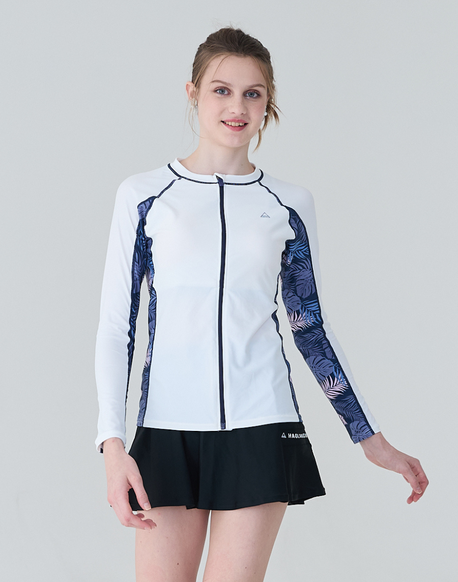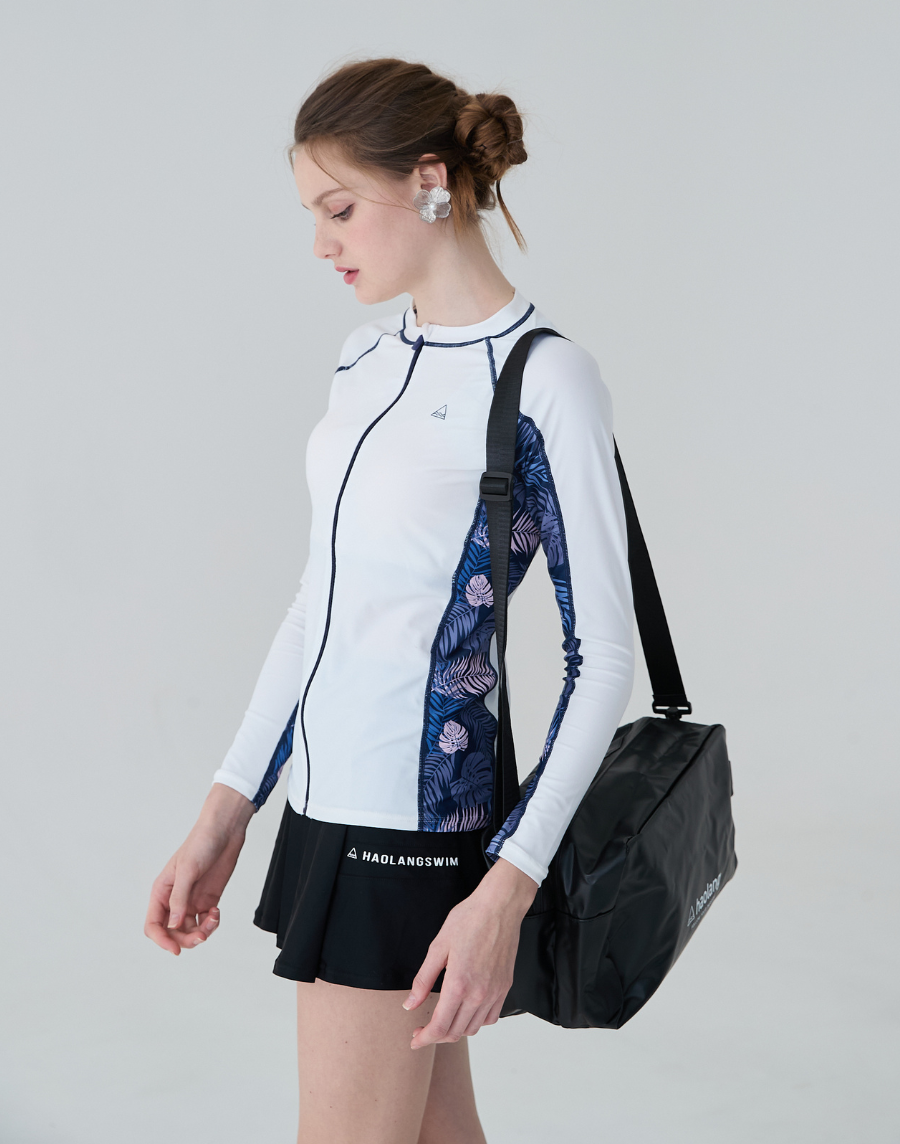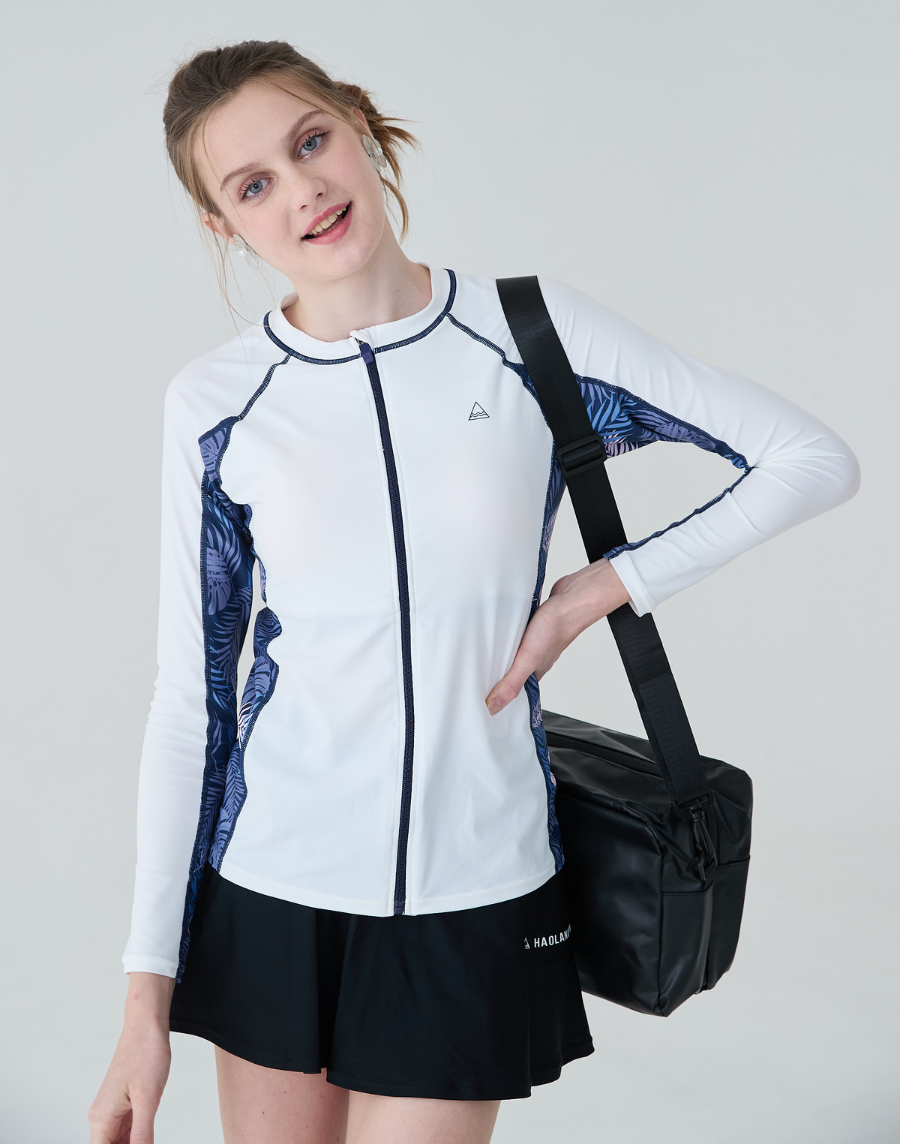 Haolang 晨霧白花葉長袖拉鍊泳衣