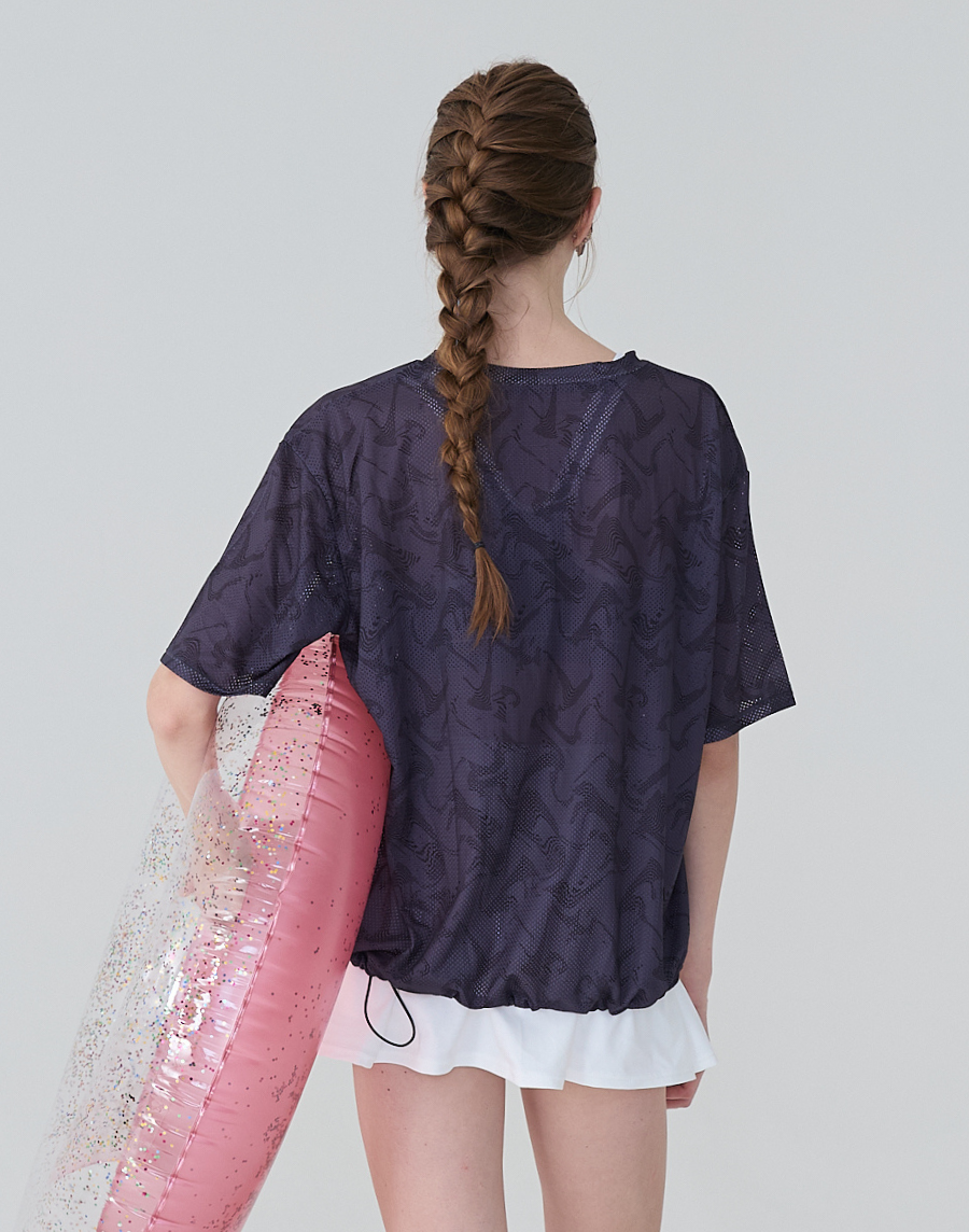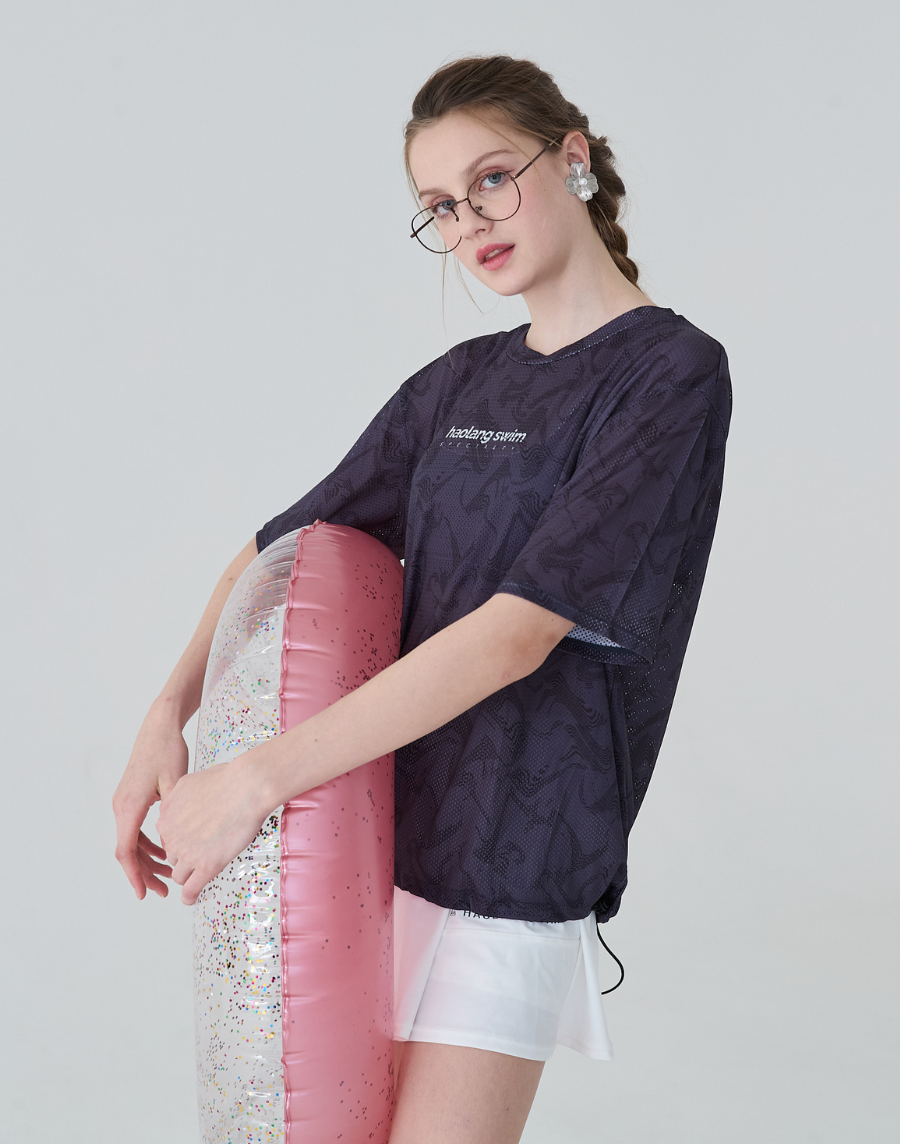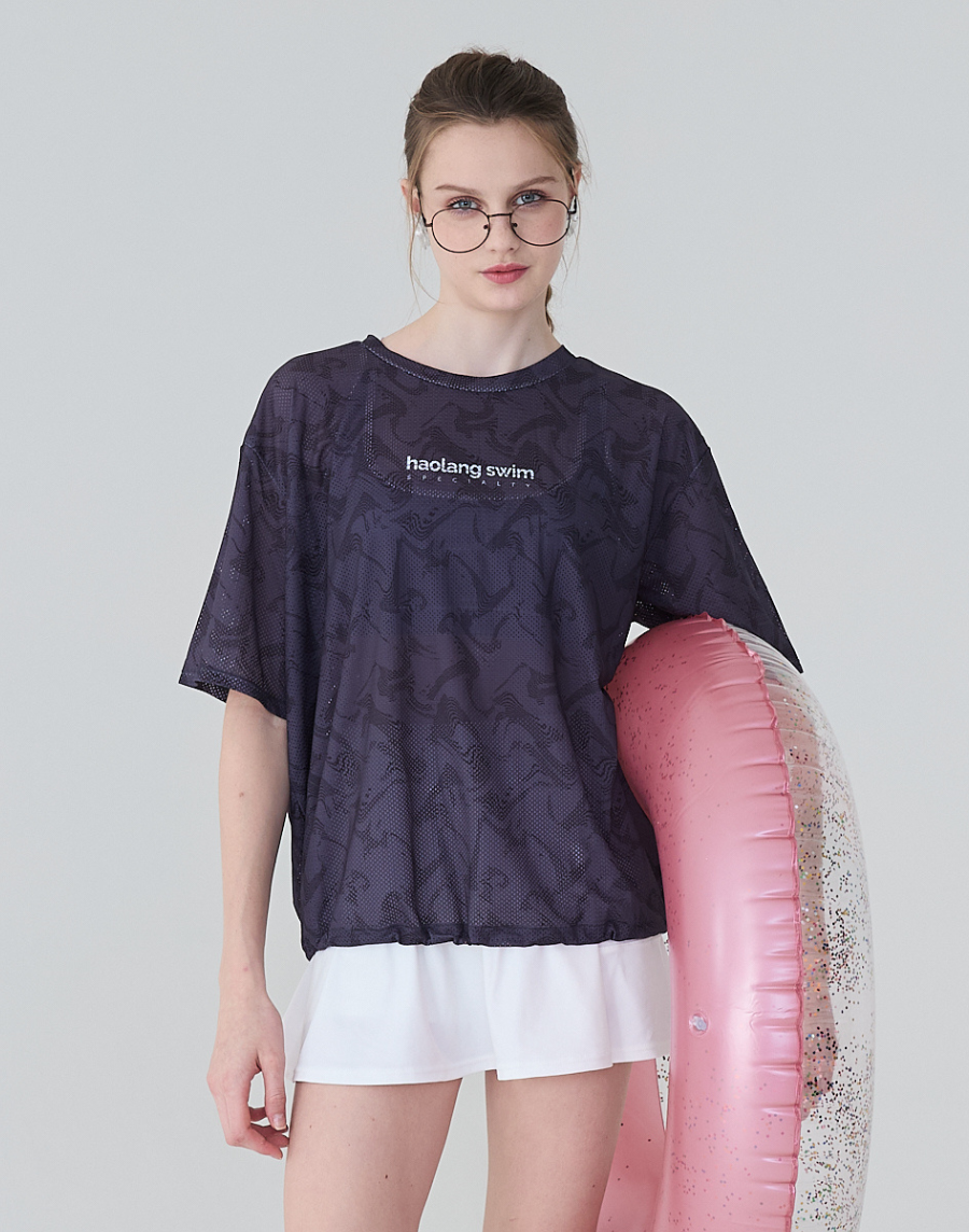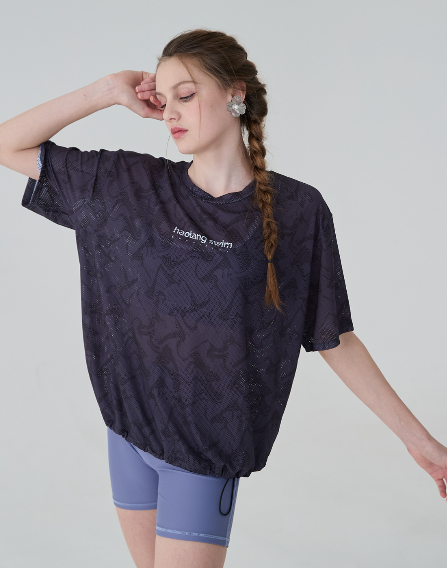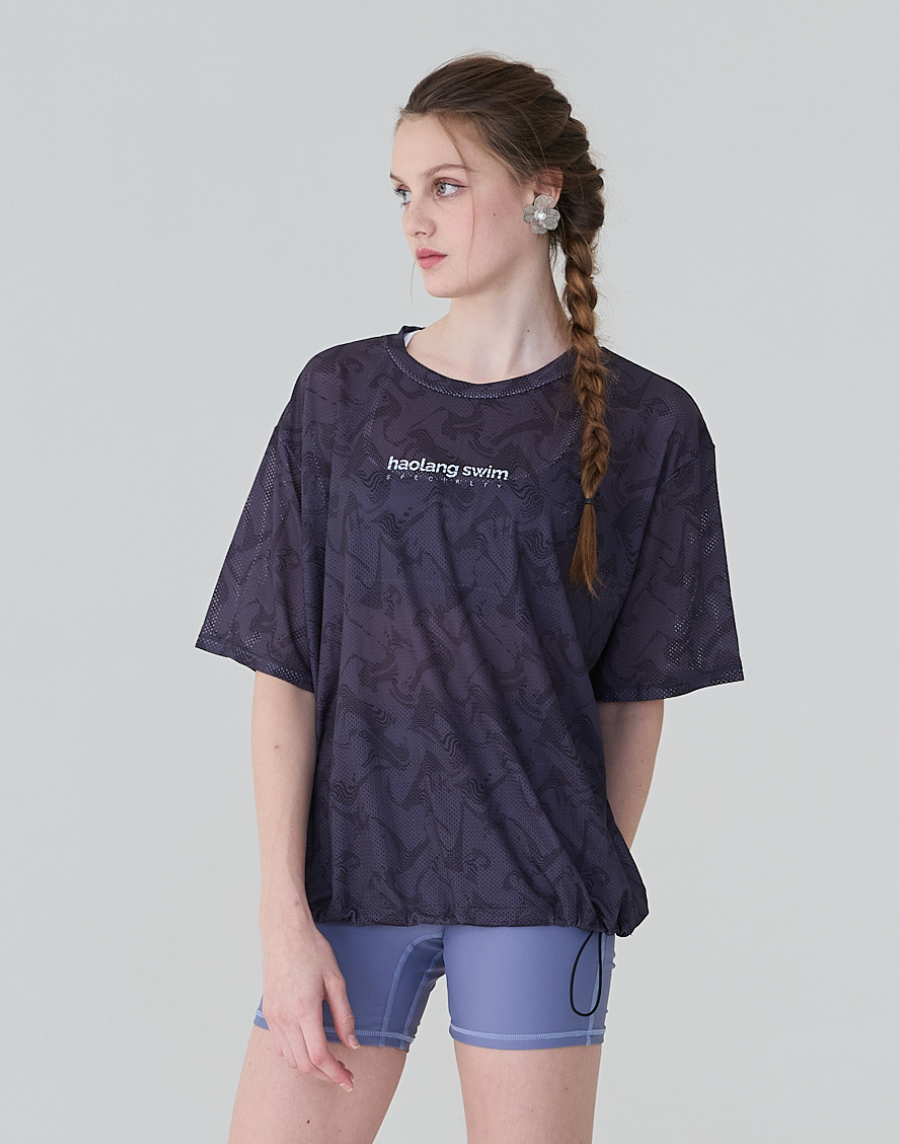 Haolang 水紋透氣抽繩短袖罩衫